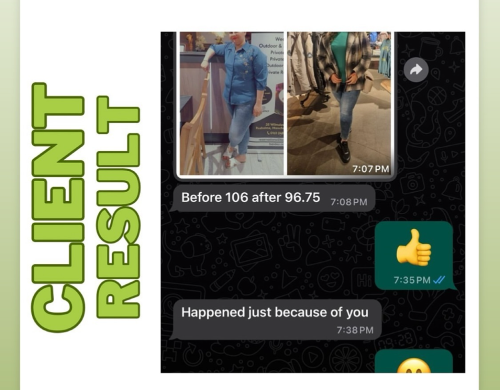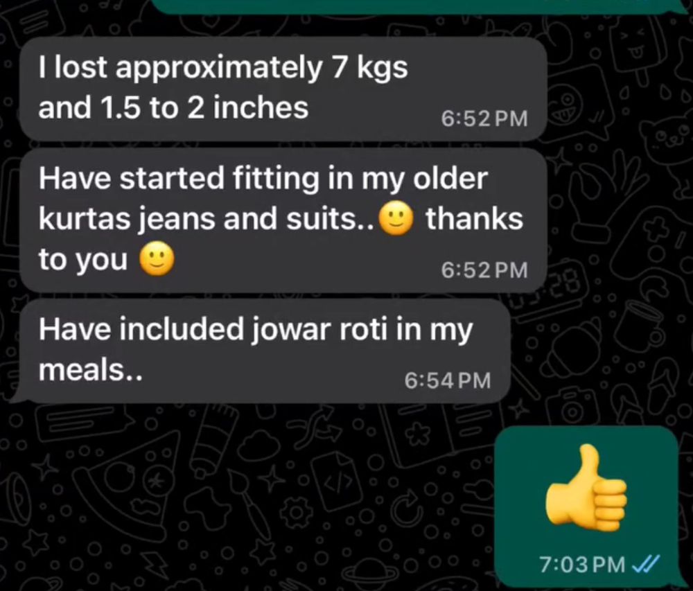 Thanks very much for helping me out to guide with diet plan which lead to a weight loss of about 17 kg in seven months. It has really changed my lifestyle and boosted my confidence. Nutritious diet and exercise have become part of my life now.