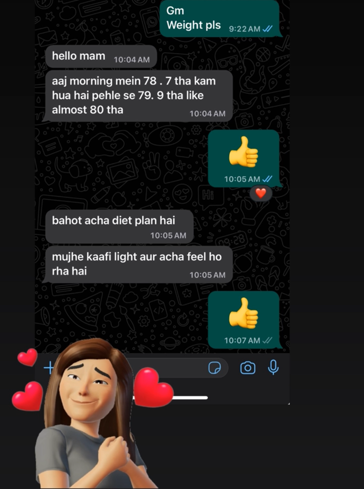 Alka mam is really good with her diet plan. She is very helpful and mostly available for any question arises due to diet plan. I have lost close to 7 kgs in almost 5 months considering my low metabolism and pre diabetic.